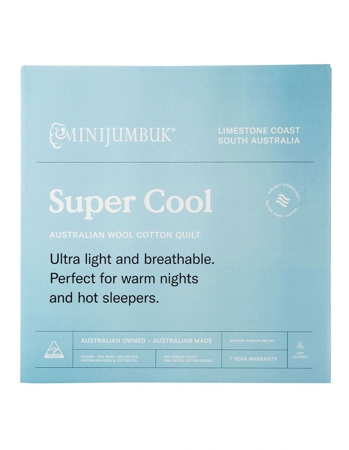 Made using Airlight Technology, our Super Cool Wool Cotton Quilt features an ultra light fill and fine sateen cotton casing thats designed to pull moisture away from the body keeping you comfortable throughout the night.