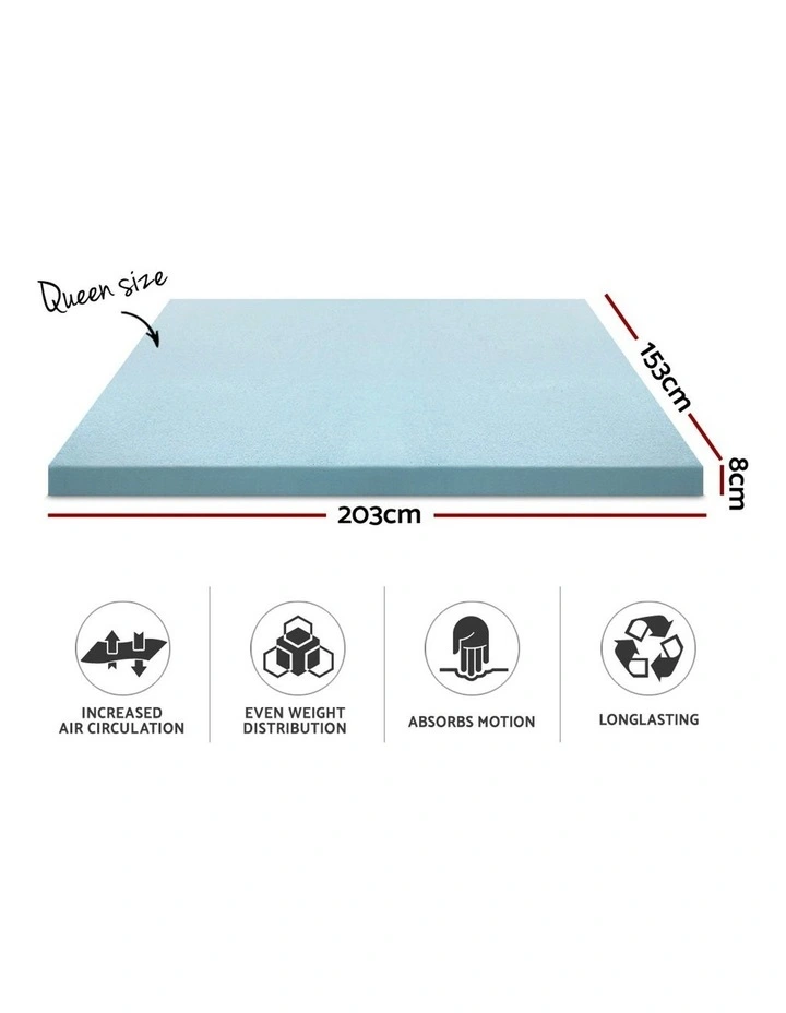 Add that extra bit of comfort to your mattress. An extra 8cm to be precise with our cool gel mattress topper. And the difference is simply wonderful. Thats because our topper provides palpable relief to your pressure joints no matter how you sleep, a cooler sleeping surface and not least, individual contouring of your body shape thanks to the memory foam. The memory foam also helps to even body weight distribution, eliminate motion disturbance and dissipate body heat to keep your rest nice and cool. Eco-friendly in every way with its highly breathable bamboo fabric covering, our cool get mattress topper is just the extra that you need to turn your rest and sleep from good to great.